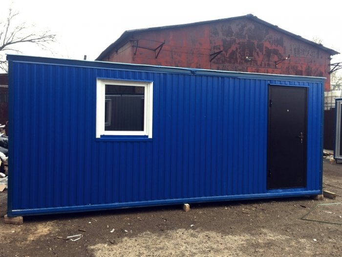Дачный дом из блок-контейнера, синий профлист